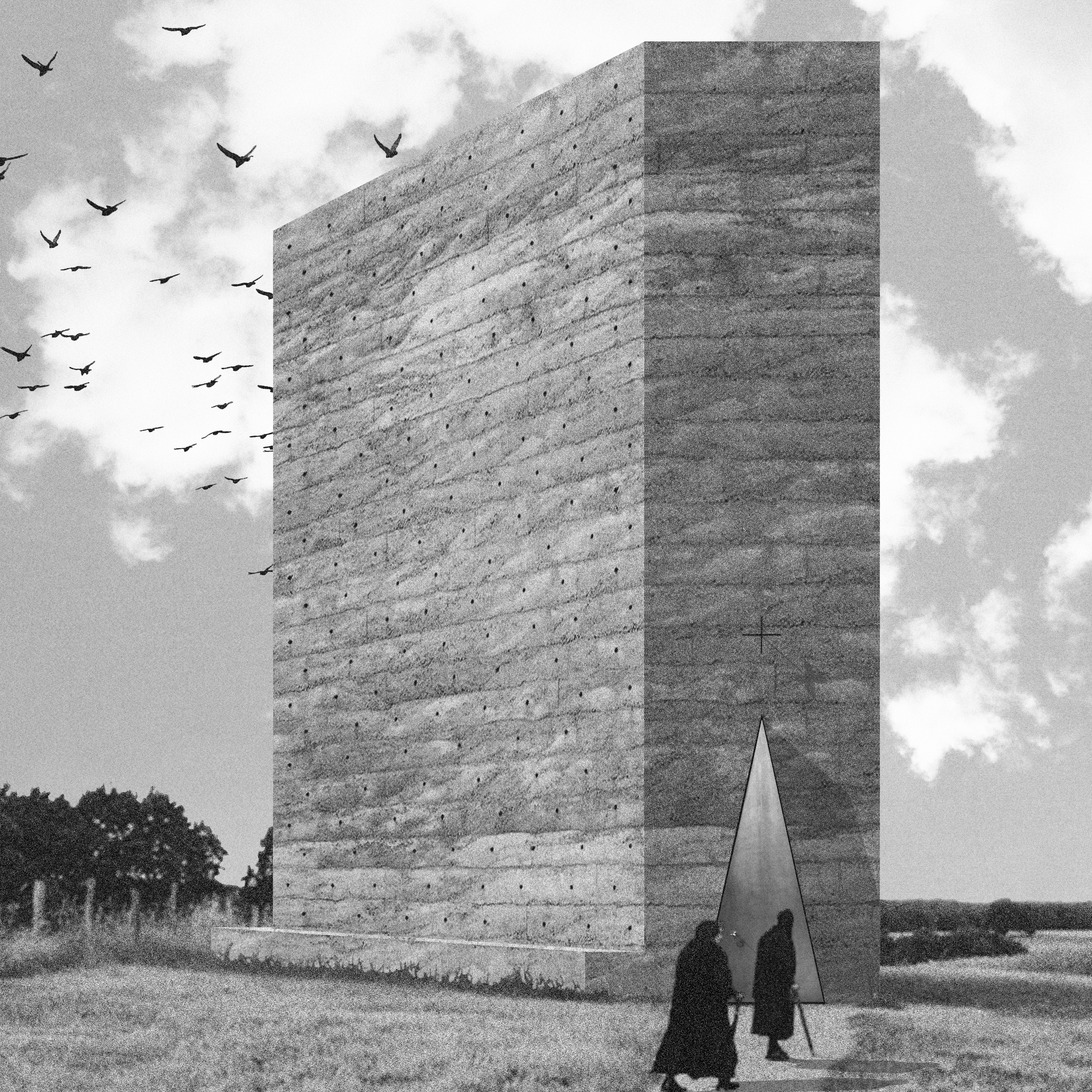 Le projet de l’architecte suisse est surprenant, intriguant, à la fois évident et complexe, et propose une expérience unique autant par l’œuvre finie que par son processus de conception. Le dessin de la chapelle rend compte de la matérialité particulière de l’œuvre à travers les textures de ses plans et coupes, et de sa volumétrie archaïque grâce aux élévations perspectives.